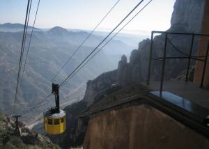 A cable car descending, from atop Montserrat in Spain. I took a train here from Barcelona on a daytrip, and am so happy I did. Up allmost a mile high, there was a small town, a historic Benedictine abbey – Santa Maria de Montserrat – and innumerable scenic vistas along the many walking paths. I could have stayed up there for a week.
