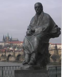 I really like this shot I snapped in Prague, Czech Republic, because its got notable things in its foreground, middleground and background. First is a sculpture of the composer Bedřich Smetana, taken from outside the museum named after him. Second is the Charles Bridge, which is now more than 650 years old. And finally, in the back corner, is Castle Prague, the official residence of the nation’s president.