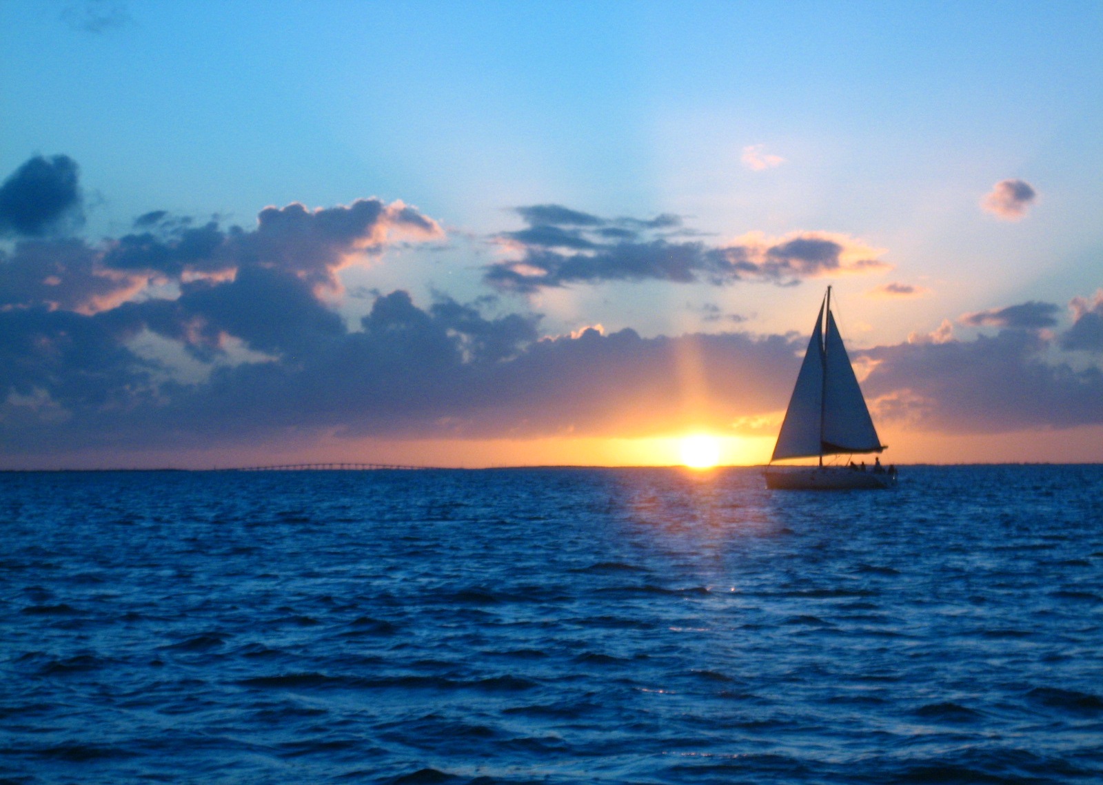 A sailboat off the coast of Southern Florida at sunset. Taken in January 2008 while on a sailing trip around the Florida Keys with my father, uncle and grandfather.